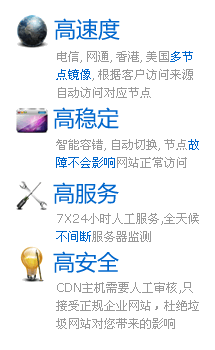 CDN云主机是福州智鼎网络科技有限公司最新推出的支持CDN加速的主机产品,主要支持云计算、云存储、云加速、云建站和云管理等功能。 CDN云主机优势说明 高速度:自动在电信、网通、移动、美国、香港等地机房建立镜像缓存服务器,根据访问客户来源,自动访问距离客户最快速服务器,镜像节点与数据中心之间采用BGP高速线路传输,不论客户端是什么网络,均可以全网高速访问。 高稳定:分布式集群架构,避免单点故障,在线率99.999% 。CDN镜像节点智能容错功能,自动切换到备用节点,即使某个或者多个节点死机或机房被封,也毫不影响! 高服务:CDN主机需要人工审核,只接受正规企业网站,杜绝垃圾网站对您带来的影响; 专用服务器,不与普通网站放在一起。专业团队,优先人工服务。个人用户请选择我司其他产品。 高安全:所有机房均采用正规电信机房,所有数据均支持在线备份,即使原硬盘损坏,也可以比较容易找回网站数据。 CDN云主机与传统虚拟主机功能对比 传统的虚拟主机都是单台服务器,一旦机器硬件损坏、IP被封、机房网络故障等,都将导致网站不能访问,严重的情况数据还无法及时取回,即使想换一家服务商也因为没有数据而无能为力。同时传统虚拟主机还存在跨网访问慢的问题,网通用户访问电信服务器速度慢等等... |